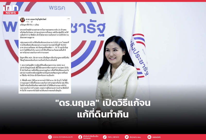 “ดร.นฤมล” เปิดวิธีแก้จนด้วยการแก้ที่ดินทำกิน