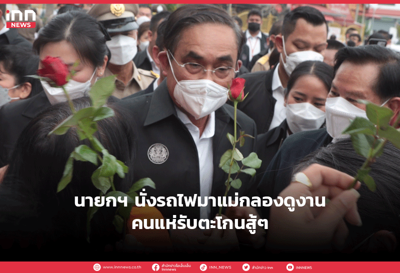 นายกฯ นั่งรถไฟมาแม่กลองดูงาน-คนแห่รับตะโกนสู้ๆ