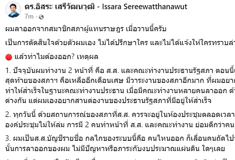 "ดร.บิล" แจงเหตุผล ลาออกจาก สส.บัญชีรายชื่อ ไม่เป็นปัญหาภาระ งปม. พร้อมมั่นใจ ปชป. คัดคนคุณภาพ "หลายหัวช่วยกัน ดีกว่าหัวเดียว"