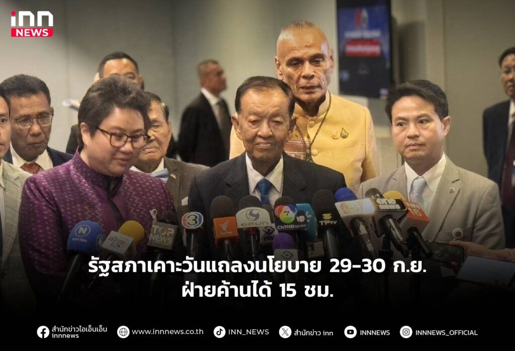 รัฐสภาเคาะวัน แถลงนโยบายรัฐบาล 29-30 ก.ย. ฝ่ายค้านได้เวลาซักฟอก 15 ชั่วโมง ในจำนวนนี้ แบ่งให้เพื่อไทย 6 ชม.