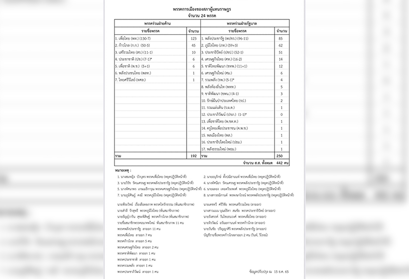 เช็คยอด ส.ส. ในสภา ลดฮวบ เหลือ 442 คน