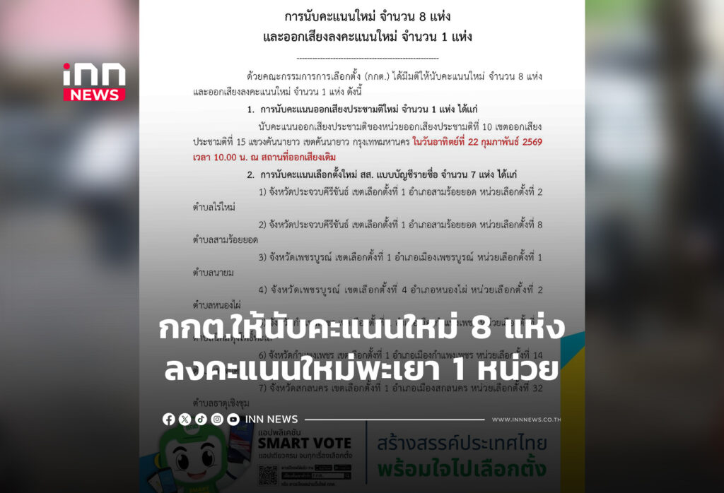 กกต.ให้นับคะแนนใหม่8 แห่ง-ลงคะแนนใหม่พะเยา1หน่วย