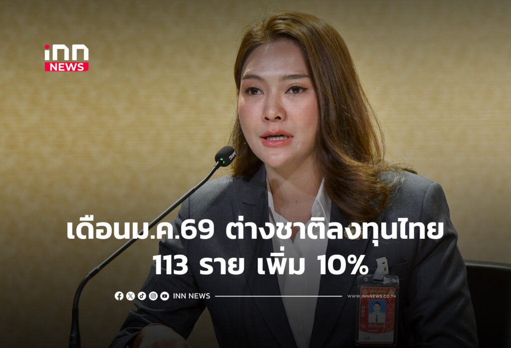 เดือนม.ค.69 ต่างชาติลงทุนไทย 113 ราย เพิ่ม 10%