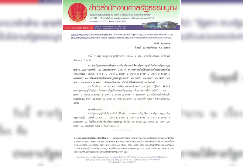 เอกฉันท์!มติศาล รธน. ชี้ขาด ร่าง พรบ.ประกอบรัฐธรรมนูญว่าด้วยพรรคการเมืองไม่มีข้อความขัด หรือแย้งต่อรัฐธรรมนูญ