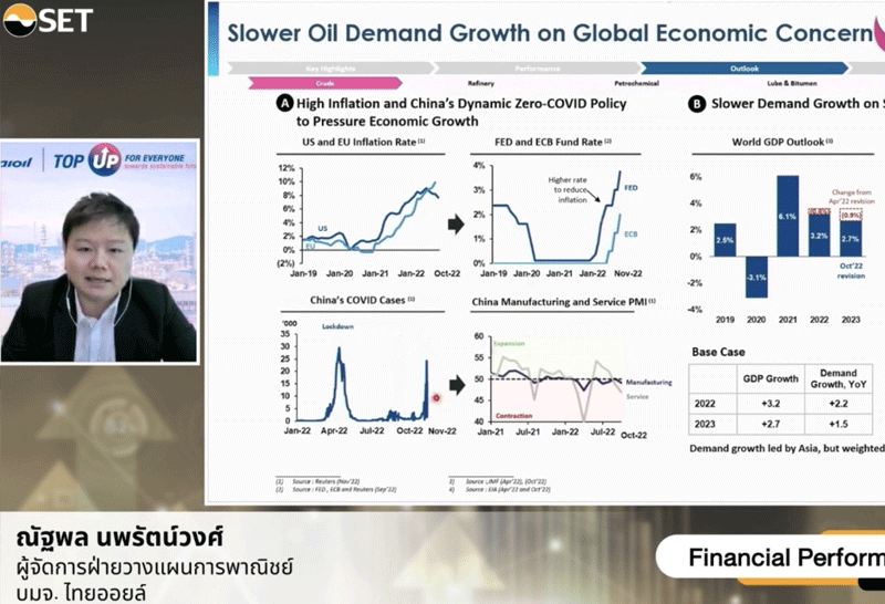 ไทยออยเผยธุรกิจโรงกลั่น-ปิโตรฟื้นไตรมาส4/65 ไม่ขาดทุนสต็อกน้ำมัน คาดปี 66 ภาพรวมธุรกิจฟื้นตัวชัดเจน