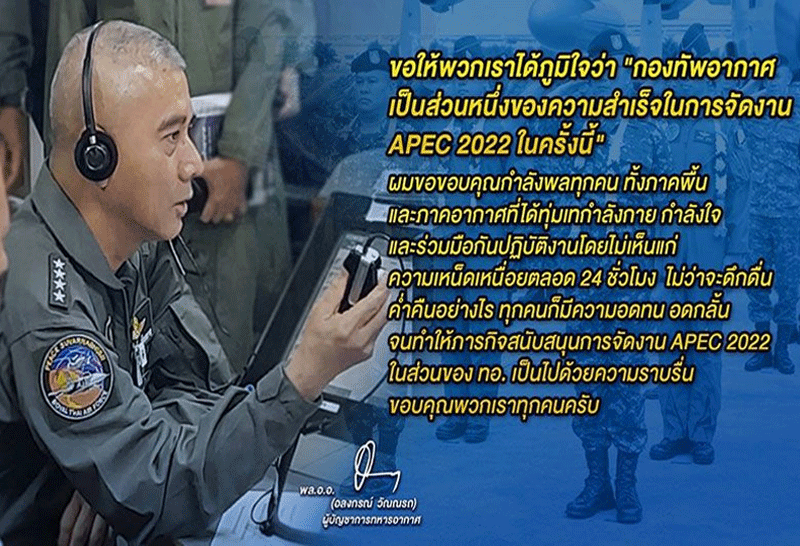 “บิ๊กตุ๊ด”ส่งข้อความขอบคุณน้องๆ ทหารอากาศ ทุ่มกำลังกายตลอด24 ชม. ช่วยงานเอเปก 2022 ขอให้หน่วยเคลื่อนกำลังกลับที่ตั้งโดยปลอดภัย
