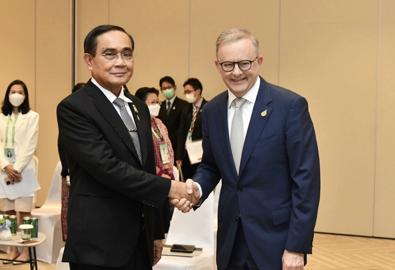 นายกฯ หารือนายกฯออสเตรเลียแบบพบหน้าเป็นครั้งแรก ชื่นชมความสัมพันธ์ระหว่างกัน พร้อมขยายความร่วมมือให้แน่นแฟ้นครอบคลุม รวมทั้งพร้อมร่วมมือเพื่อแก้ปัญหาความท้าทายเกี่ยวกับสิ่งแวดล้อม