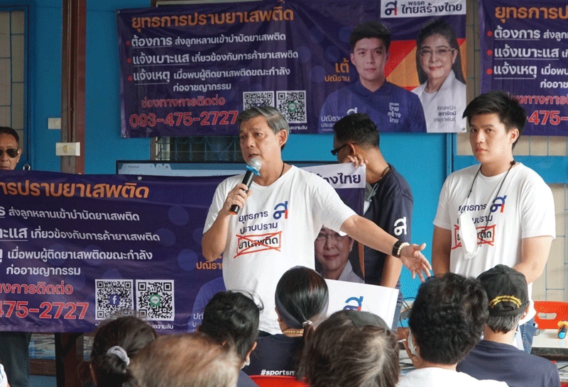 ไทยสร้างไทย จัดคาราวานปราบยาเสพติดลงชุมชนบางนา ชวนประชาชนแจ้งเบาะแส-แจ้งเหตุ-นำคนเสพมาบำบัด