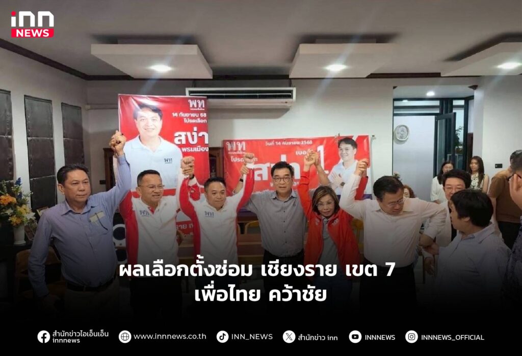 เลือกตั้งซ่อม เชียงราย เขต 7 เพื่อไทย คว้าชัย เอาชนะผู้สมัครจากพรรคประชาชน กว่า 1.5 หมื่นคะแนน