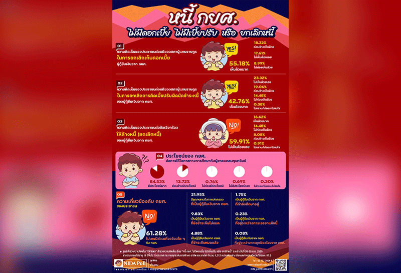 NIDA โพลคนมองเงินกู้กยศ.มีประโยชน์ค้านล้างหนี้ แต่หนุนเลิกเก็บดอก