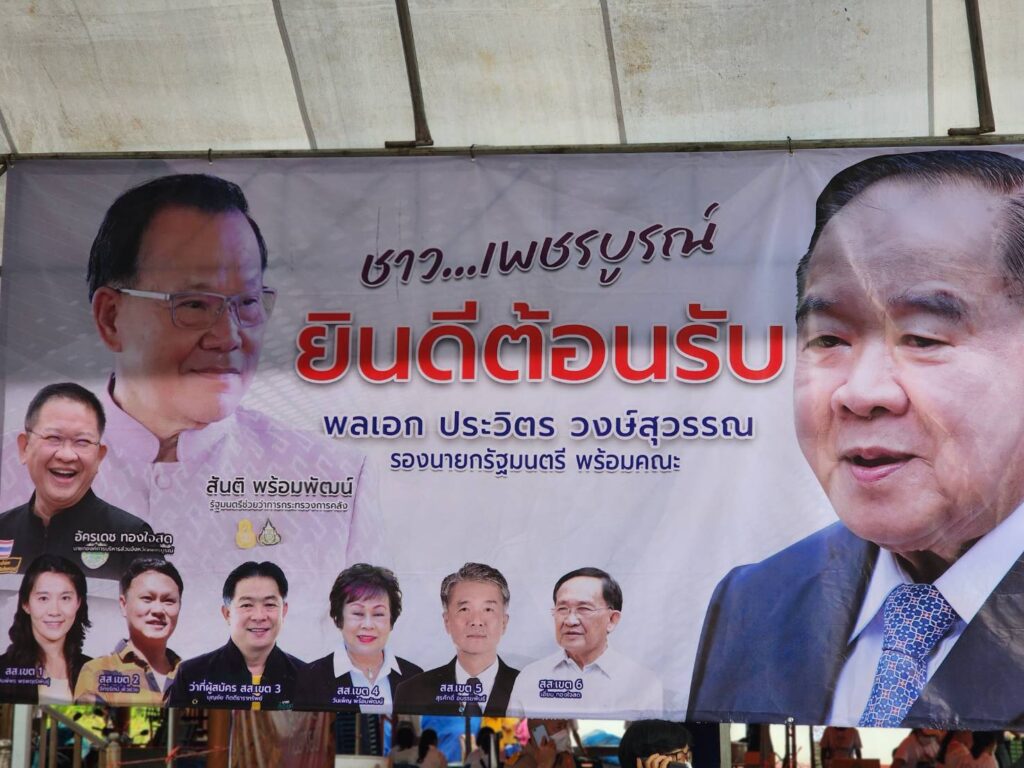ป้ายพรึ่บ เชียร์ "ประวิตร-สันติ" เรารักลุงป้อมสุดใจ! ในน้ำมีปลา บนฟ้ามีนก รองนายกฯลุงป้อม จับตาป้ายเกินขนาดหลังบังคับใช้กฎ กกต. พบ มีป้ายใหญ่ ยินดีต้อนรับ ติดรูปลุงป้อม ส.ส.เพชรบูรณ์ครบ
