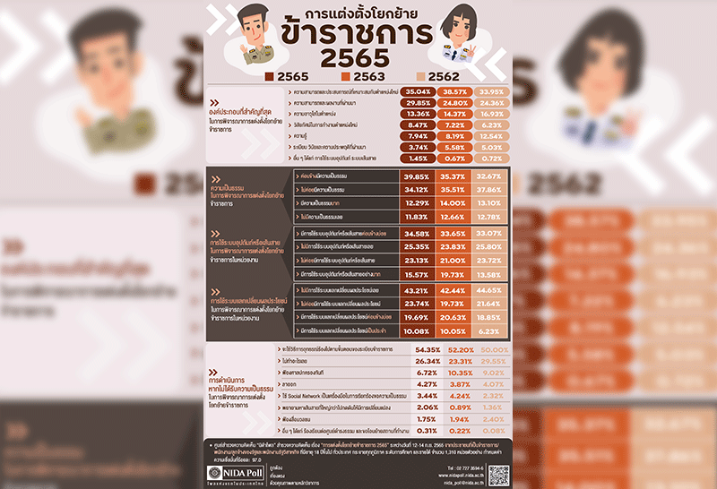 "นิด้าโพล" เผยคนมองแต่งตั้งโยกย้ายข้าราชการมีใช้ระบบอุปถัมภ์-เส้นสาย ชี้หากไม่ได้รับความธรรมจะยื่นขออุทรณ์ตามระเบียบ