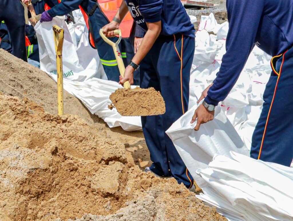 กองทัพเรือ สนับสนุนกทม.บรรจุกระสอบทรายเตรียมการรับมือฝนที่จะตกหนักในวันนี้