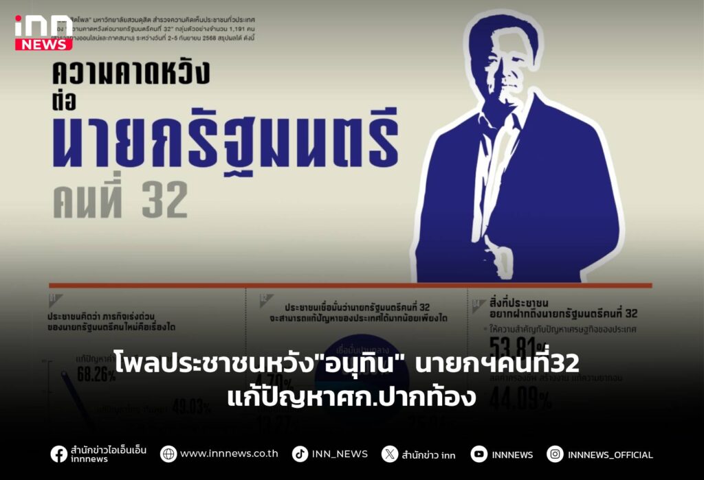 โพลประชาชนหวัง”อนุทิน” นายกฯคนที่32 แก้ปัญหาศก.ปากท้อง