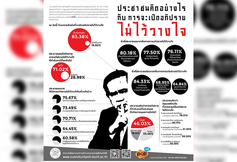 ดุสิตโพลคนหนุนซักฟอกบิ๊กตู่ จับตาปมแก้ปัญหาเศรษฐกิจของแพง-46.03%มองมีผลยุบสภา