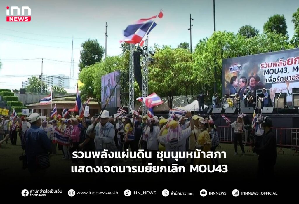 คณะรวมพลังแผ่นดินปกป้องอธิปไตย ชุมนุมหน้ารัฐสภา แสดงเจตนารมย์ให้ยกเลิก MOU ปี 2543 และ 2544 ชี้เป็นต้นตอข้อพิพาทเขตแดนไทย–กัมพูชา