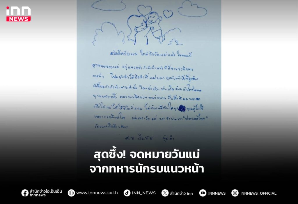สุดซึ้ง! จดหมายวันแม่ จากทหารนักรบแนวหน้า สู้เพราะรักแม่ รักประเทศไทย แม่สอนให้ทำในสิ่งที่ถูกต้อง ปกป้องบ้านเกิดด้วยหัวใจ ไม่ใช่เพราะเกลียดใคร