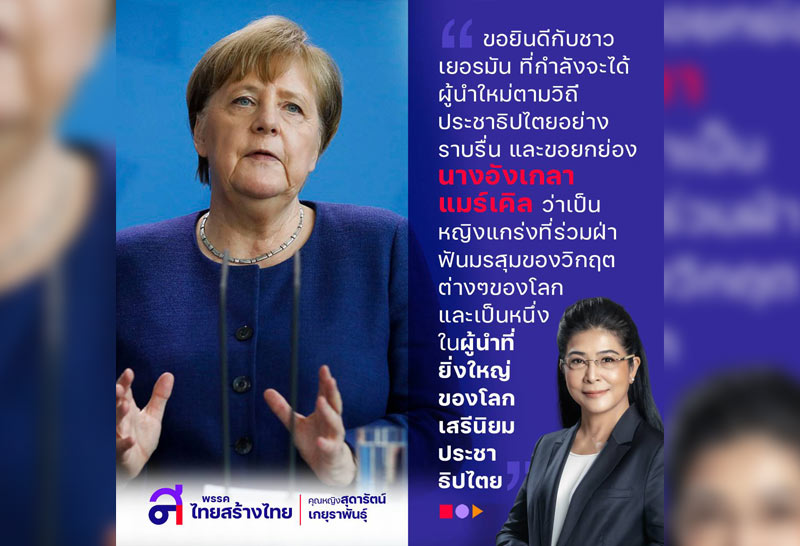 "สุดารัตน์" โหนเลือกตั้งเยอรมนี ชื่นชม"อังเกลา แมร์เคิล"เป็นหญิงแกร่ง นำพาประเทศก้าวพ้นเศรษฐกิจตกต่ำ