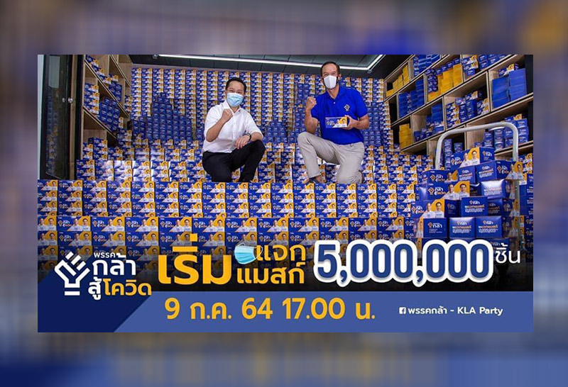 พรรคกล้า เปิดตัวโครงการ "แจกแมสก์ 5,000,000 ชิ้น" เดินหน้าแจกหน้ากากอนามัยพื้นที่กรุงเทพมหานคร-ปริมณฑล