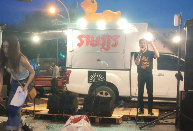 ตลาดนัดกลุ่มราษฎร คึกคัก "ไมค์" ปราศรัย อัดประยุทธ์ กินหรูที่ภูเก็ต ไม่เห็นประชาชนในสายตา