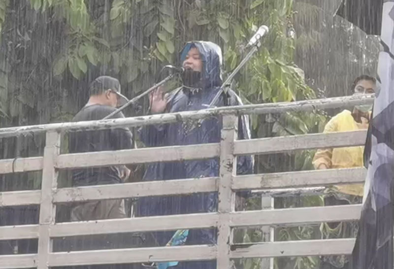 เพนกวินนำม็อบไปทำเนียบฯปราศรัยเจอฝนถล่ม