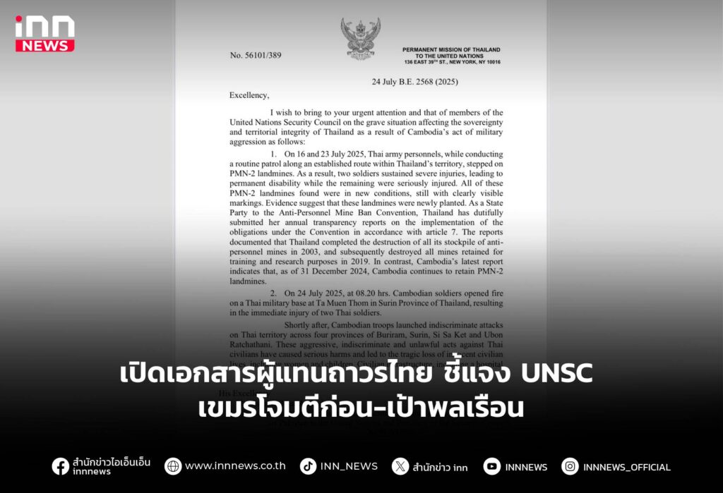 เปิดเอกสารผู้แทนถาวรไทย ชี้แจงUNSCเขมรโจมตีก่อน-เป้าพลเรือน