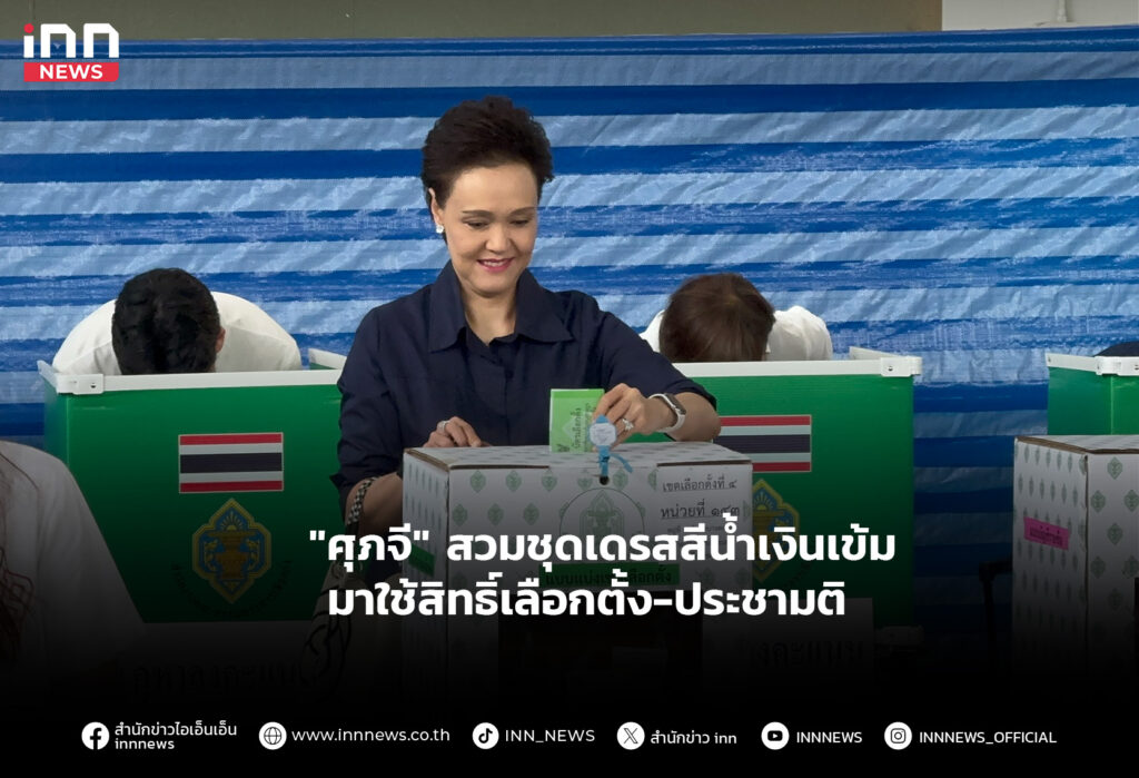 "ศุภจี" สวมชุดเดรสสีน้ำเงินเข้มมาใช้สิทธิ์เลือกตั้ง-ออกเสียงประชามติ พร้อมประชาชน ออกมาแสดงพลังกำหนดทิศทางประเทศไทย