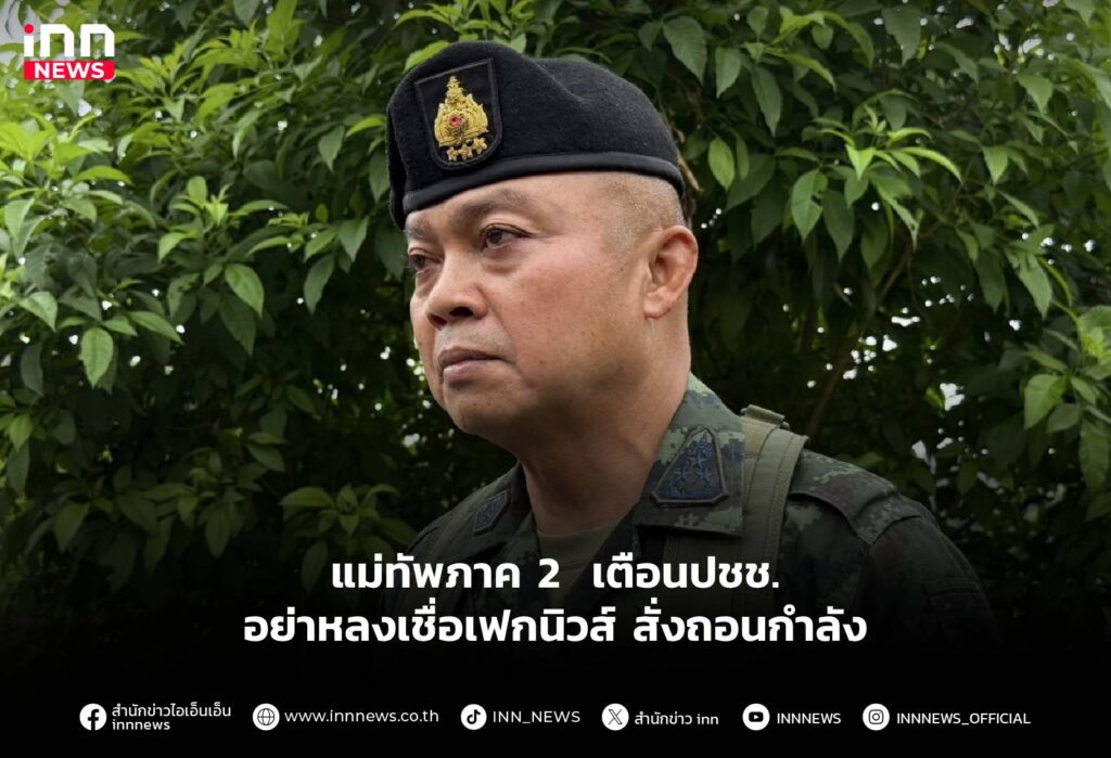 แม่ทัพภาค 2 เตือนประชาชน อย่าหลงเชื่อเฟกนิวส์ สั่งถอนกำลัง หวังปั่นกระแสยั่วยุ สร้างความเข้าใจผิด ยันทหารตรึงกำลัง 24 ชม.ปกป้องอธิปไตย