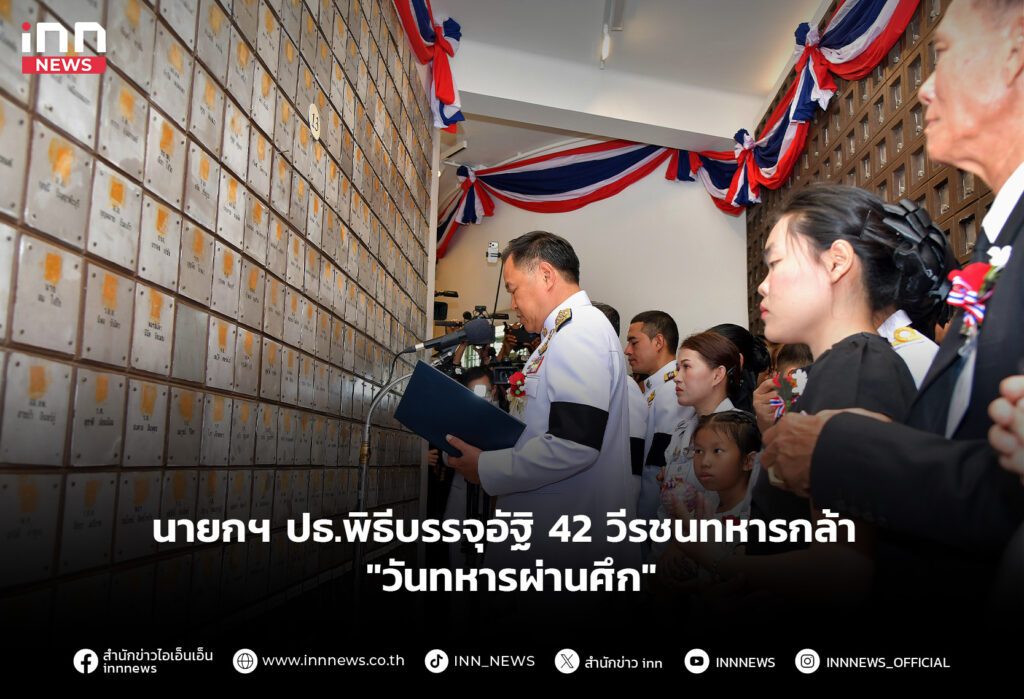 นายกฯ เป็นประธานพิธีบรรจุอัฐิ 42 วีรชนทหารกล้าปกป้องอธิปไตยไทย เนื่องในวัน “ทหารผ่านศึก“ ชี้จะเป็นเครื่องเตือนใจ และจารึกอยู่ในหัวใจของชาวไทยตลอดไป ขณะที่ทหารผ่านศึก อวยพร “อนุทิน” ให้เป็นนายกฯ อีกสมัย