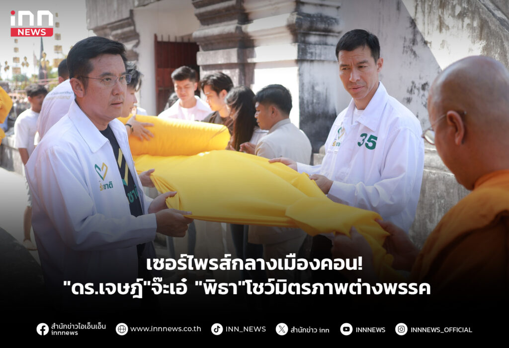 เซอร์ไพรส์กลางเมืองคอน"ดร.เจษฎ์"จ๊เอ๋ "พิธา"กลางวงแฟนคลับ โชว์มิตรภาพต่างพรรค ชี้ คิดบวก รักชาติร่วมกัน อย่าทำบ้านเมืองแตกแยก ก่อนควง"ชัยวุฒิ" นำพรรครักชาติ ห่มผ้าพระบรมธาตุฯ รับฟังเสียงชาวบ้าน
