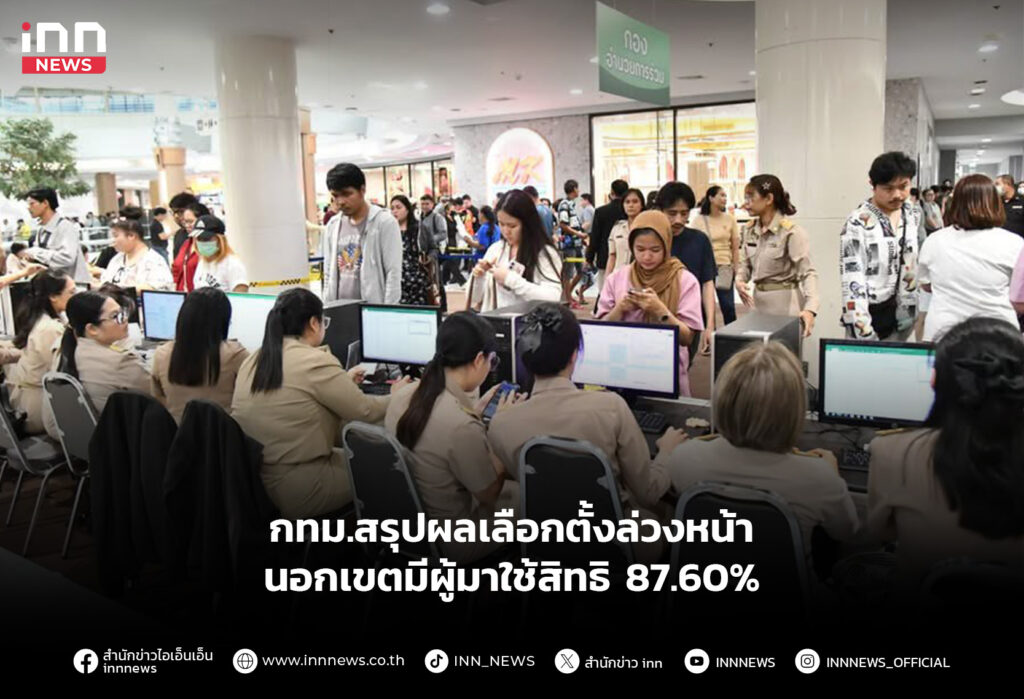 กทม.สรุปผลเลือกตั้งล่วงหน้านอกเขตมีผู้มาใช้สิทธิ 87.60%
