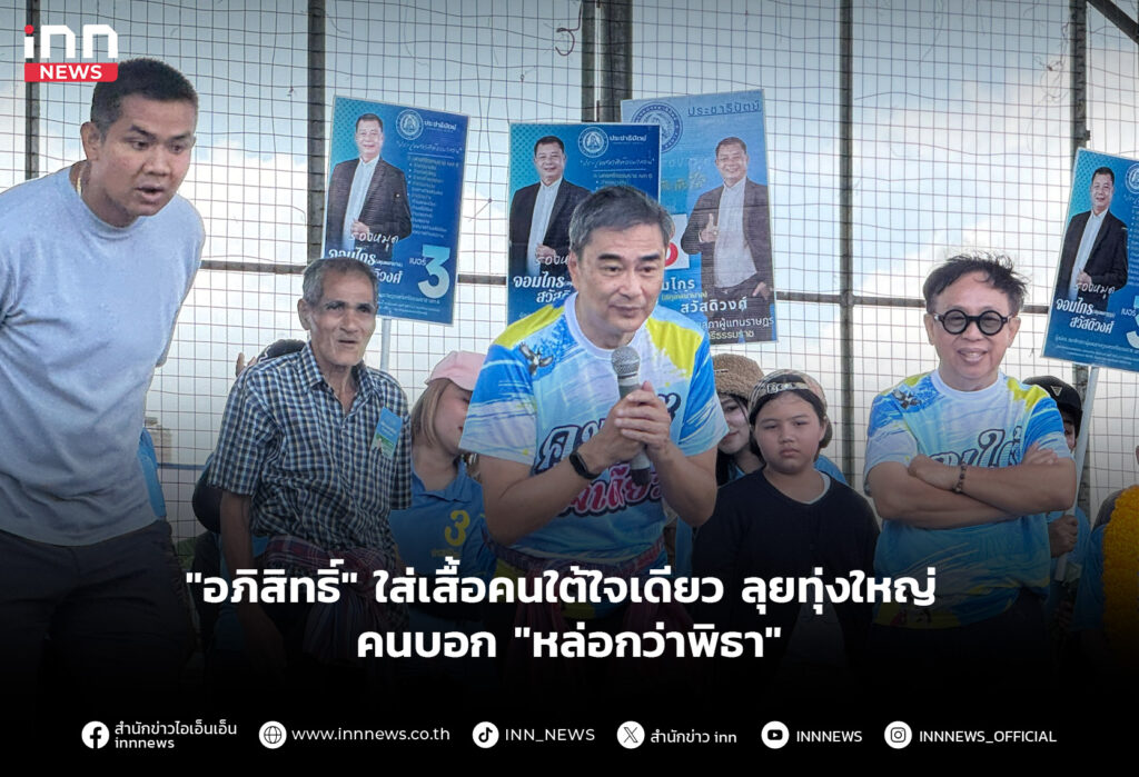 “อภิสิทธิ์” ใส่เสื้อคนใต้ใจเดียว ลุยทุ่งใหญ่ คนบอก”หล่อกว่าพิธา