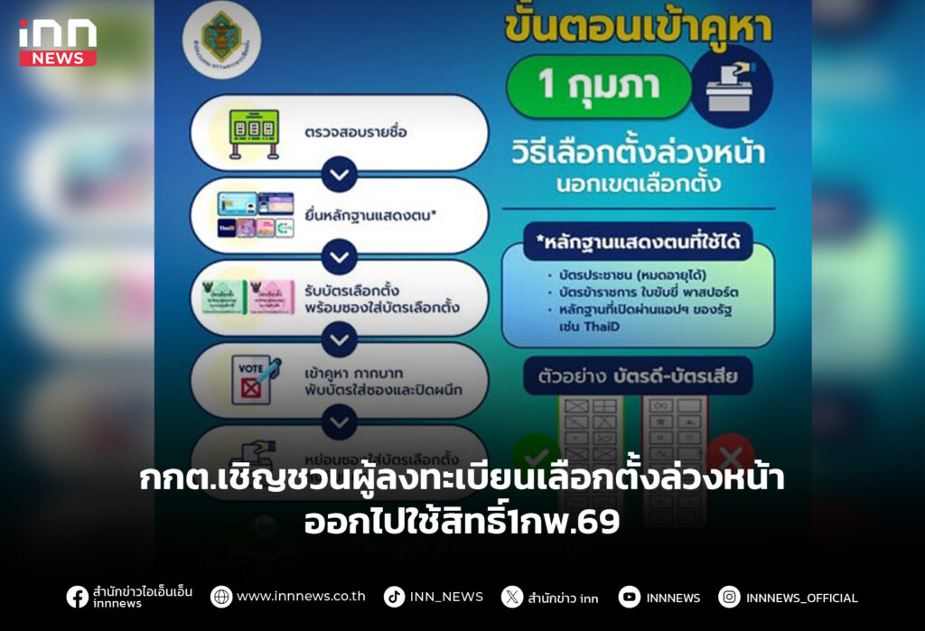 กกต.เชิญชวนผู้ลงทะเบียนเลือกตั้งล่วงหน้าออกไปใช้สิทธิ์1กพ.69