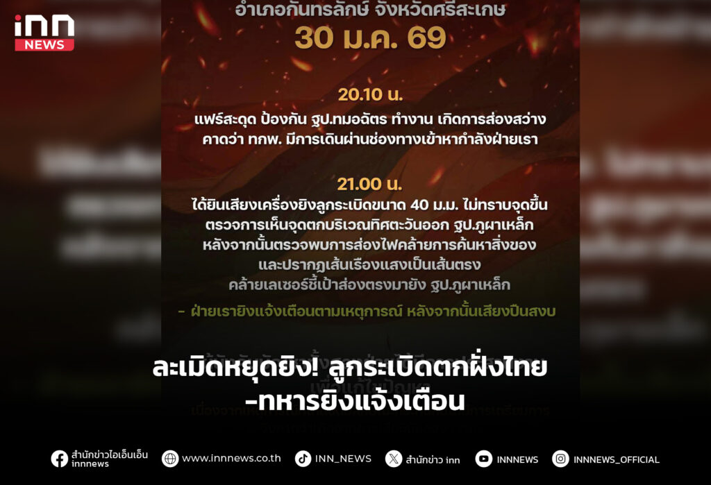 ละเมิดหยุดยิง! ลูกระเบิดตกฝั่งไทย ทหารยิงแจ้งเตือน