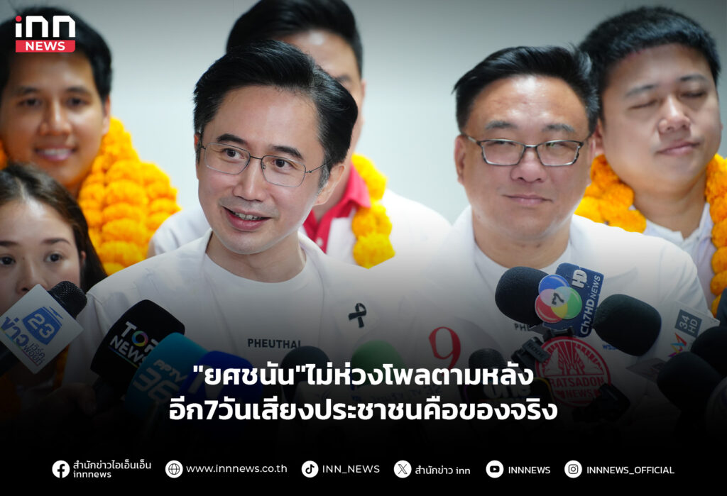 "ยศชนัน"มองแม้โพลยังตามหลัง แต่มีเปอร์เซ็นต์ความนิยมเพิ่มขึ้น สะท้อนมาถูกทาง ชี้หลังจากนี้ 7 วันเสียงของประชาชนคือผลโพลของจริง วอน กกต.เข้มตรวจสอบซื้อเสียง โยนประชาชนตัดสิน บางพรรคใช้วาทกรรมยุเลือกข้าง