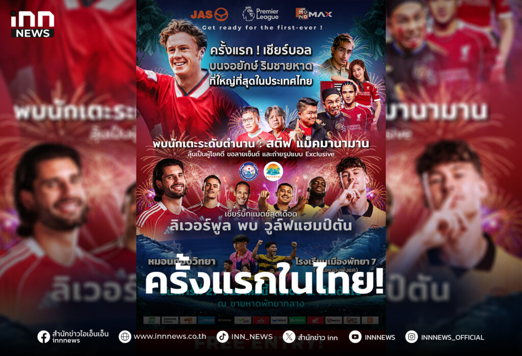 ครั้งแรกในไทย! “JAS-Monomax” ชวนเชียร์บอลริมทะเลพัทยา กระทบไหล่ “สตีฟ แม็คมานามาน” นักเตะดังระดับตำนาน 27 ธ.ค. นี้!!