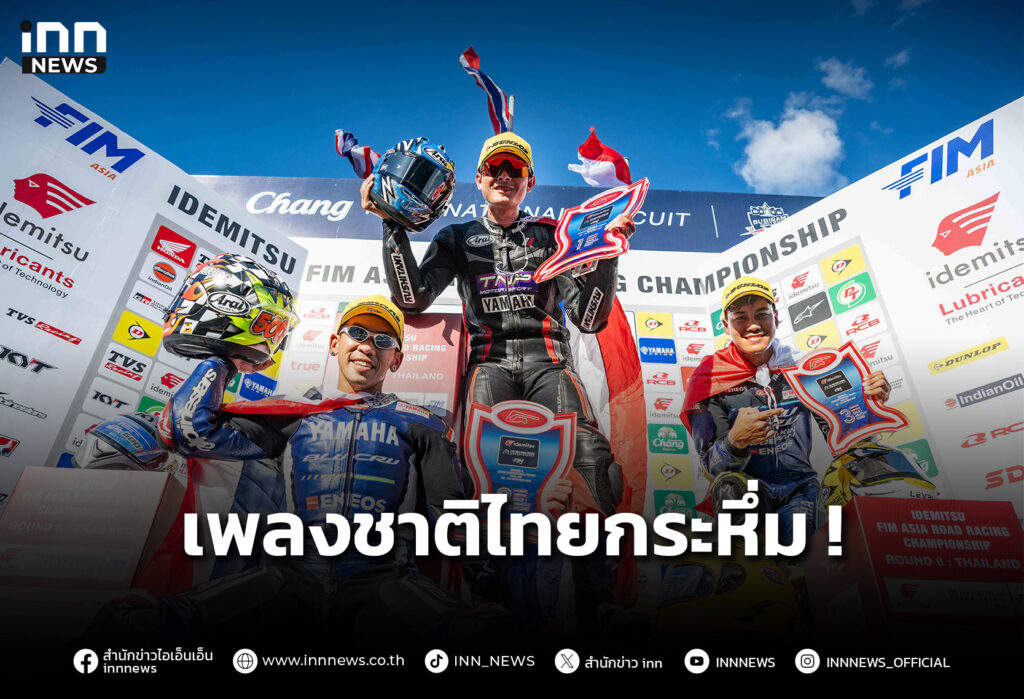 เพลงชาติไทยกระหึ่ม! “แสตมป์” เข้าวิน โฮมเรซ “ตี-ไอเดีย-อุ้ม” พาเหรดกวาดโพเดียม Asia Road Racing Championship