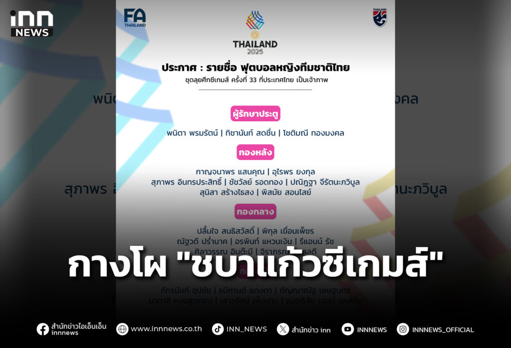 ประกาศรายชื่อ 23 แข้ง ฟุตบอลหญิงทีมชาติไทย ชุดลุยศึกซีเกมส์ ครั้งที่ 33 ที่ประเทศไทย เป็นเจ้าภาพ