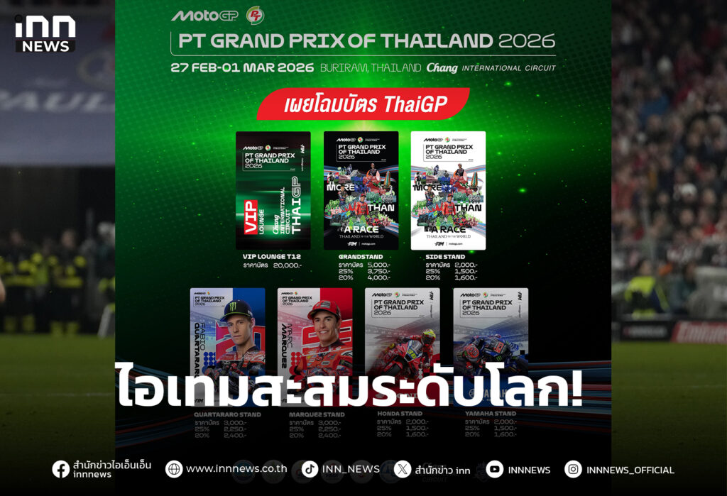 ฝ่ายจัดการแข่งขันฯ โมโตจีพี สนามประเทศไทย เผยโฉมบัตร ThaiGP คอลเลกชัน 2026 ที่จะเปิดจำหน่ายพร้อมกันทั่วโลก 11 พ.ย. นี้ สวยงาม น่าสะสม ออกแบบด้วยเทคนิคคอลลาจและกราฟิกศิลปะร่วมสมัย ถ่ายทอดอารมณ์ ความทรงจำ และประสบการณ์ของการแข่งขัน ThaiGP ในฐานะเทศกาลมอเตอร์สปอร์ตที่เป็น “มากกว่าสนามแข่ง” ผสานสองแนวคิดหลัก More Than A Race และ Thailand to The World เข้าด้วยกันอย่างลงตัว