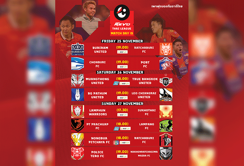 ฟรีทีวียิงสด 3 คู่! ศึก REVO THAI LEAGUE 2022/23 สัปดาห์ที่ 15
