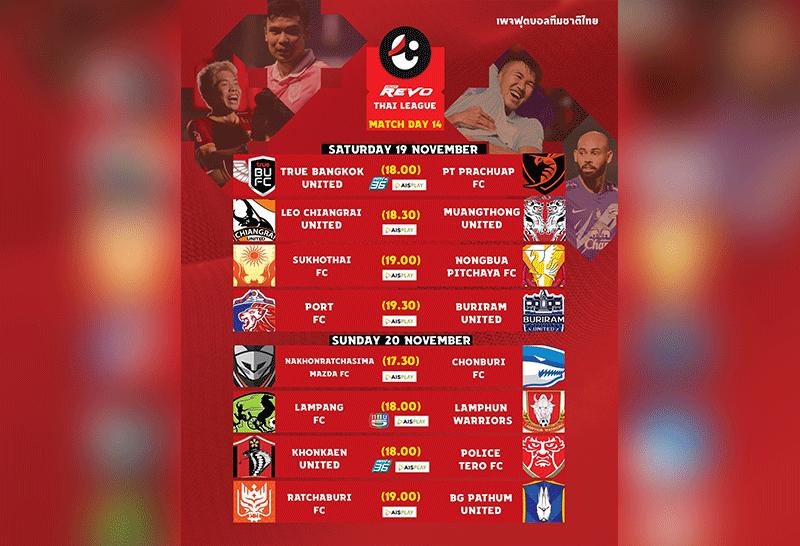 ฟรีทีวียิงสด 3 คู่ ศึกรีโว่ ไทยลีก สุดสัปดาห์นี้