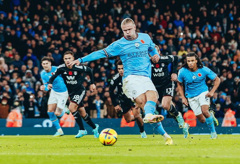 เออร์ลิง ฮาแลนด์ ลงสำรองมายิงจุดโทษประตูชัยในช่วงทดเจ็บพา แมนเชสเตอร์ ซิตี้ ที่เหลือ 10 คนตั้งแต่ครึ่งแรกเอาชนะ ฟูแล่ม 2-1 นำจ่าฝูง