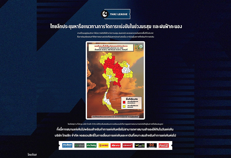 ''ไทยลีก''ประชุมหารือแนวทางการจัดการแข่งขันในช่วงมรสุม ฝนฟ้าคะนอง เพื่อรับมือกับสภาพอากาศในวันแข่งขัน