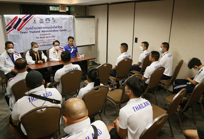 ดร.ก้องศักด ยอดมณี ผู้ว่าการ กกท. ให้กำลังใจนักกีฬาทีมชาติไทย ขอให้ทำเต็มที่ ไม่กดดันตัวเอง และเป็นทูตกีฬาเผยแพร่ความเป็นไทย