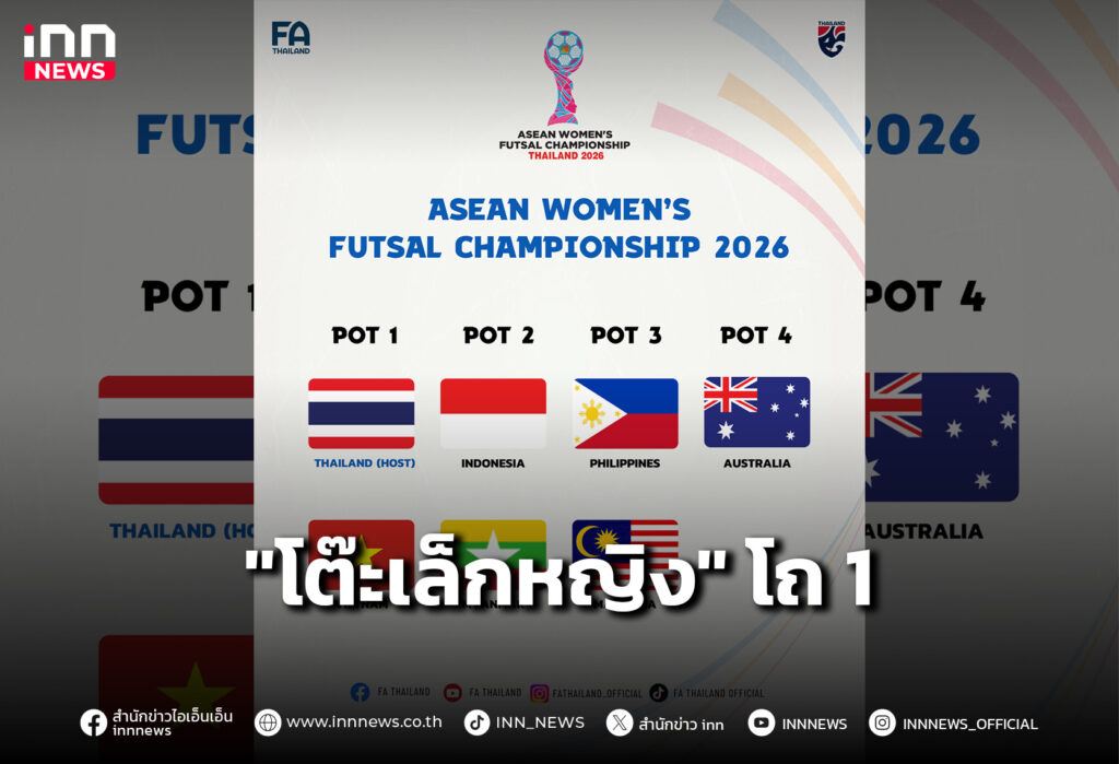 ฟุตซอลหญิงไทย อยู่โถ 1 จับสลากศึกชิงแชมป์อาเซียน 2026 ที่โคราช วันที่ 19 ม.ค.นี้