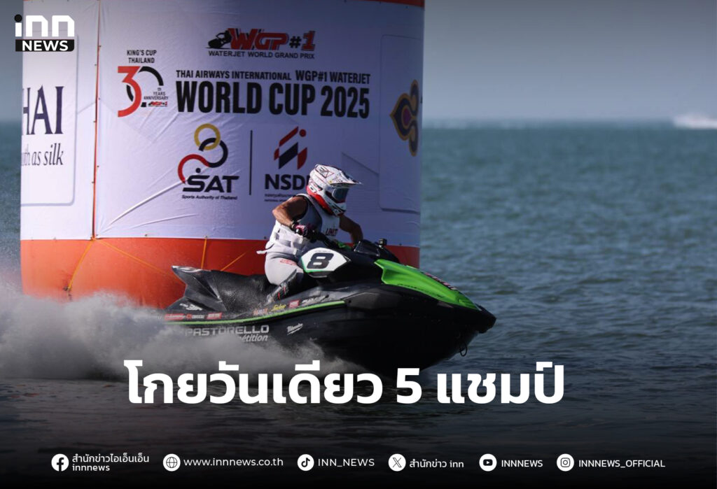 ทัพเจ็ตสกีไทยผลงานสุดยอด โกยวันเดียว 5 แชมป์โลก ในการแข่งขันวันที่ 3 ของเจ็ตสกีชิงแชมป์โลก “การบินไทย ดับเบิลยู จีพี วัน วอเตอร์เจ็ต เวิลด์ คัพ 2025” ระหว่างวันที่ 17-21 ธ.ค. ที่หาดจอมเทียนพัทยา ชลบุรี เมื่อวันที่ 19 ธ.ค.