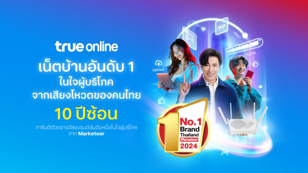 ทรูออนไลน์ขอบคุณลูกค้าที่ไว้วางใจ ครองความเป็นแบรนด์ยอดนิยมอันดับหนึ่งในใจผู้บริโภค การันตีด้วยรางวัล “Marketeer No.1 Brand Thailand 10 ปีซ้อน