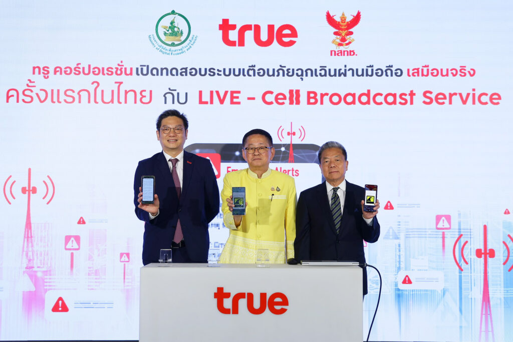 ทรู คอร์ปอเรชั่นล้ำไปอีกขั้น ครั้งแรกในไทยโชว์ทดสอบ “LIVE – Cell Broadcast Service” แจ้งเตือนภัยฉุกเฉิน 5 ภาษา ให้ผู้ใช้งานทรู-ดีแทคในพื้นที่ได้รับแจ้งเตือนจริง
