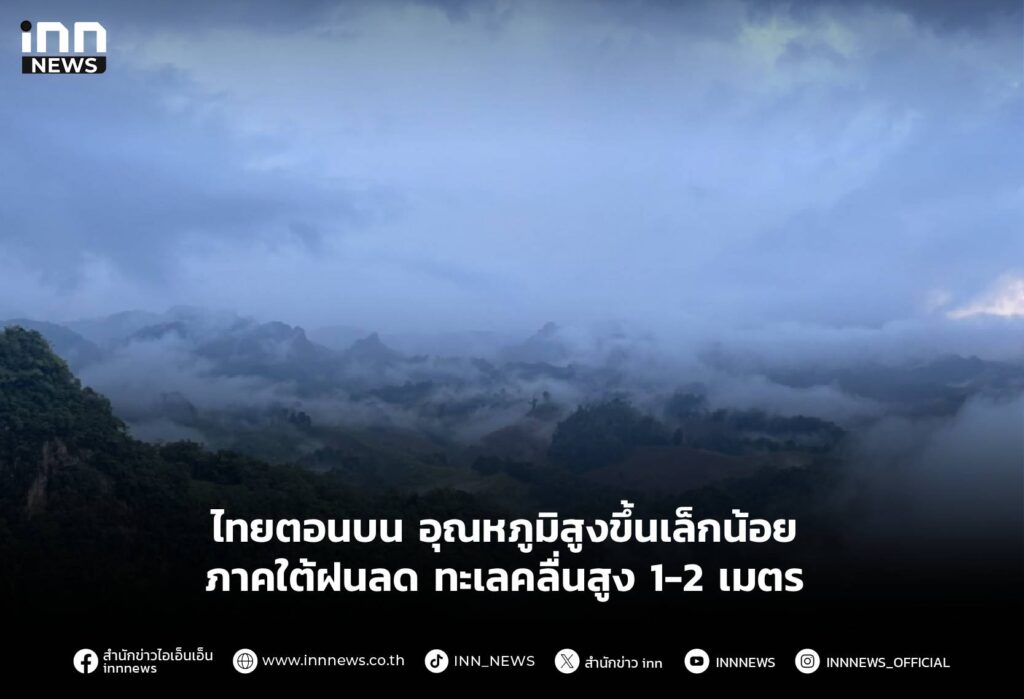 ไทยตอนบน อุณหภูมิสูงขึ้นเล็กน้อย ภาคใต้ฝนลด ทะเลคลื่นสูง 1-2 เมตร