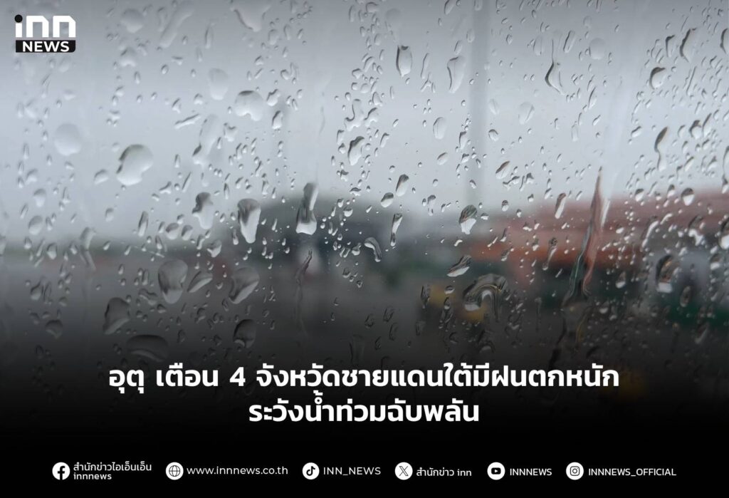 อุตุ เตือน 4 จังหวัดชายแดนใต้มีฝนตกหนัก ระวังน้ำท่วมฉับพลัน